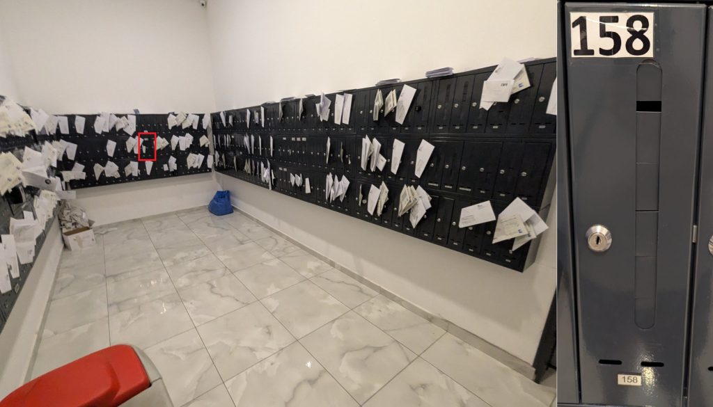 3. Ask the receptionist to show you the room with mailboxes. In mailbox 158, you will find the key and the tag (mailbox is unlocked, just open the door, take the key, and close it)
